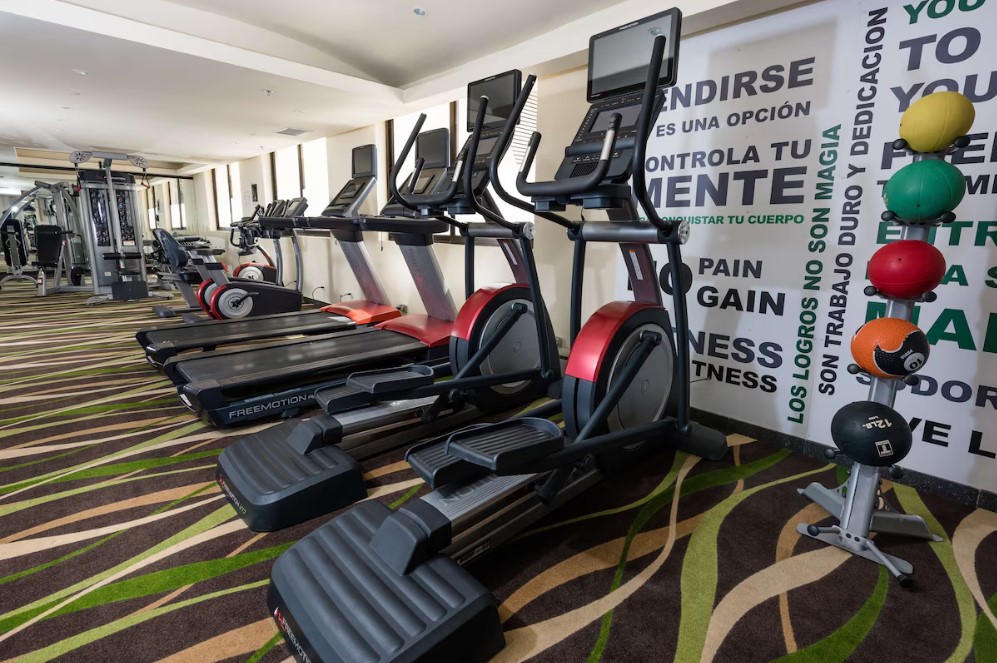 A fully equipped gym with modern workout machines, ensuring that guests can maintain their fitness routine while traveling