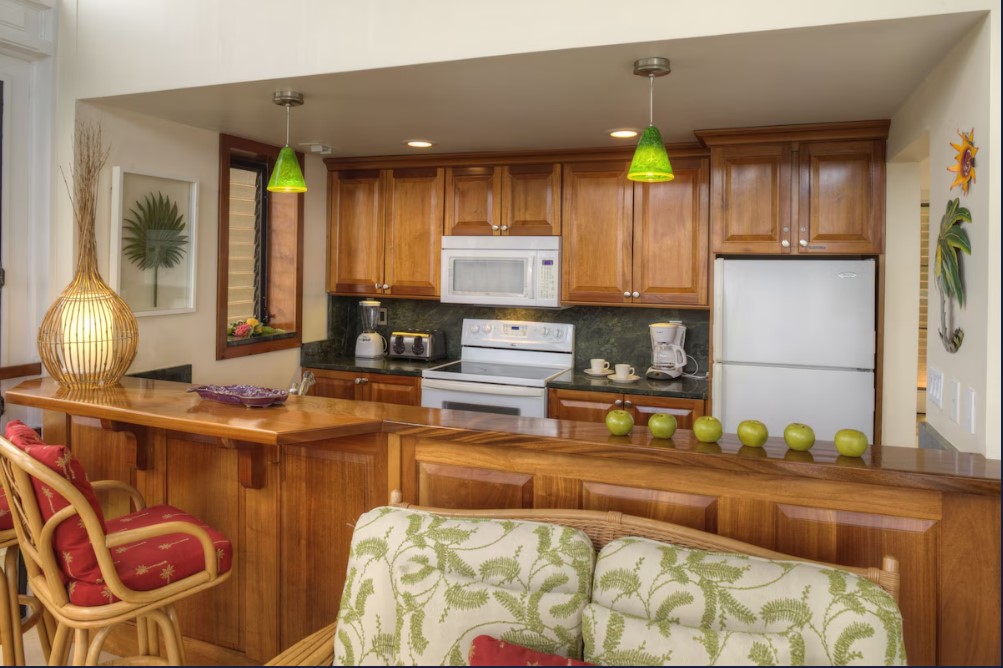 Every suite includes a fully equipped kitchen, allowing guests to cook their own meals.