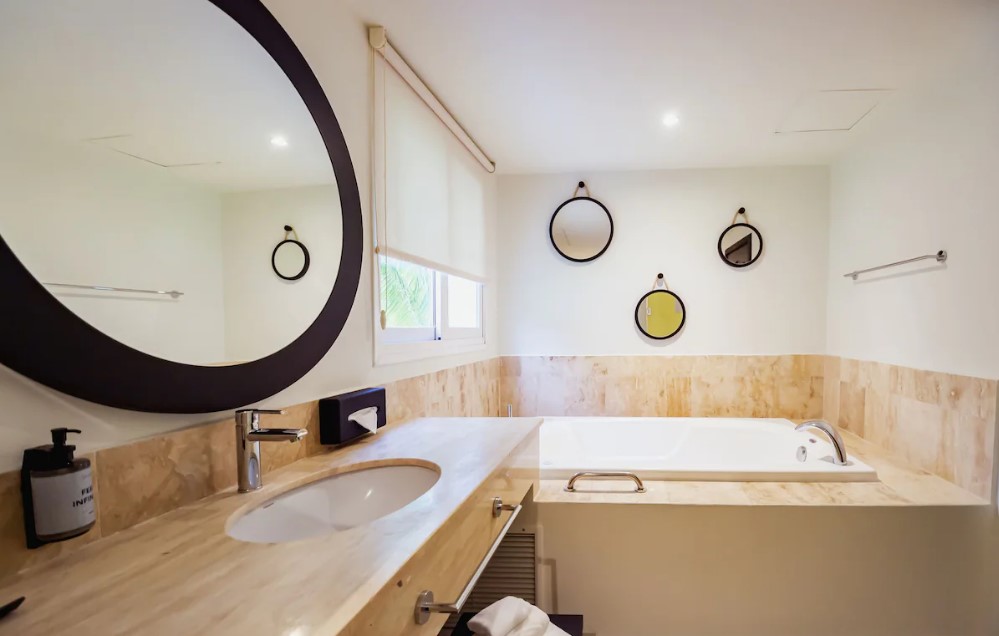 Offers scenic views of the Caribbean Sea, along with modern amenities, a sitting area, and hydro-massage bath.Junior Suite Beachside