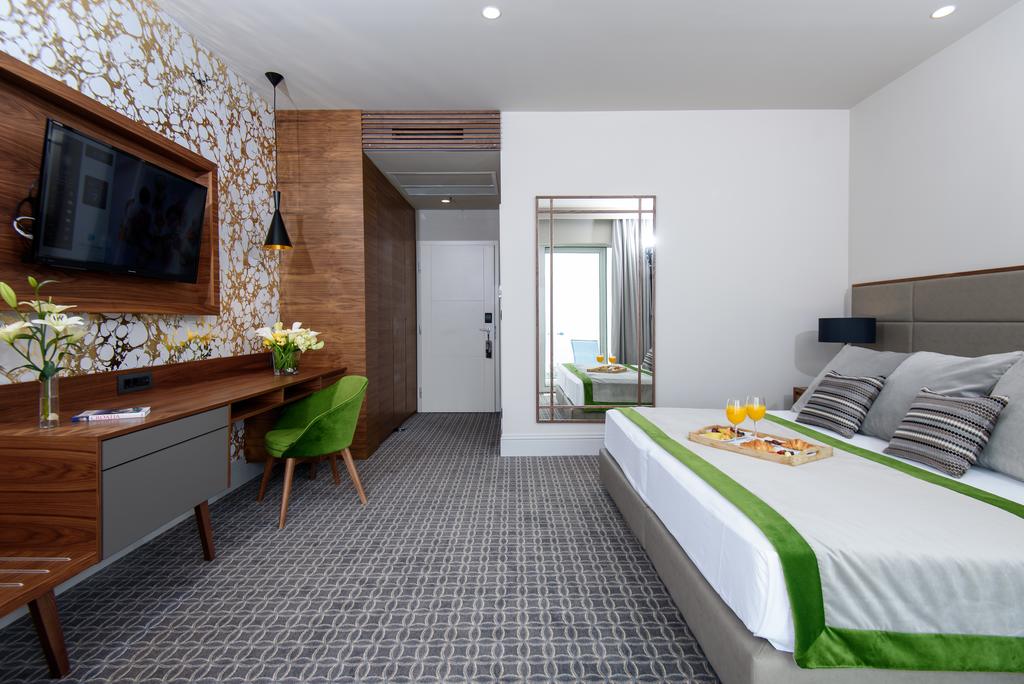 Air conditioning and satellite TV are available in every room. All have tea and coffee making facilities and most have a large balcony with sea views.