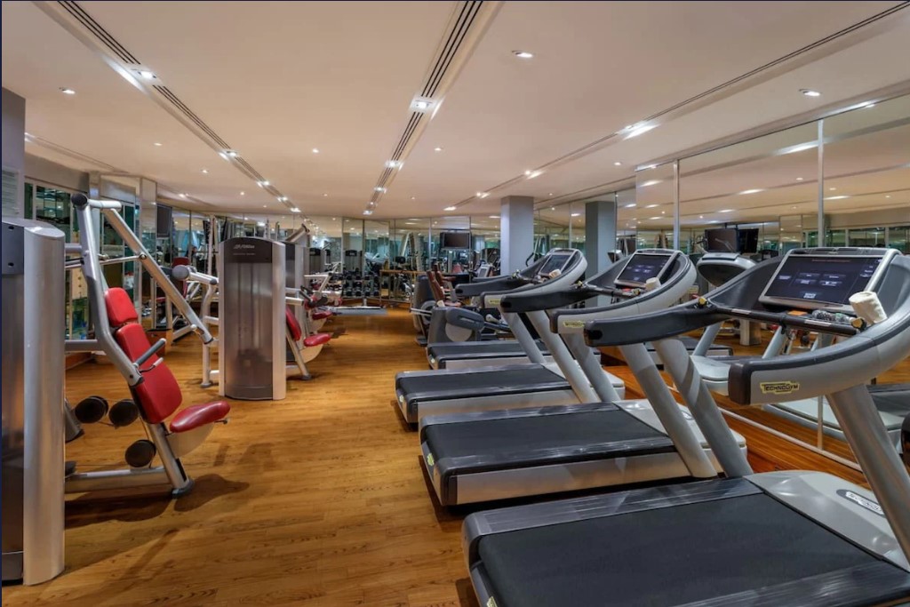 A fully equipped gym with modern workout machines, ensuring that guests can maintain their fitness routine while traveling
