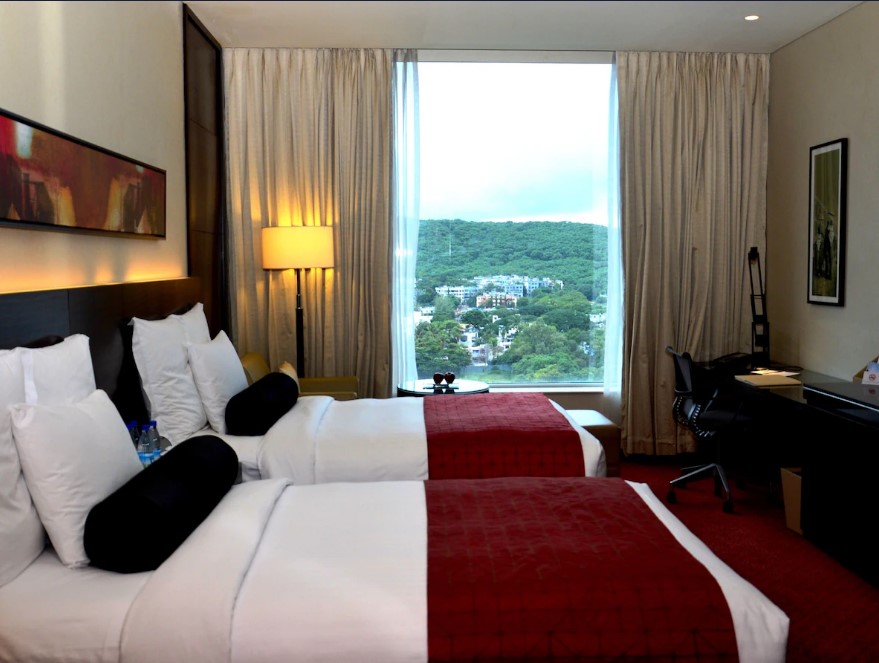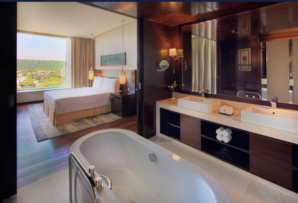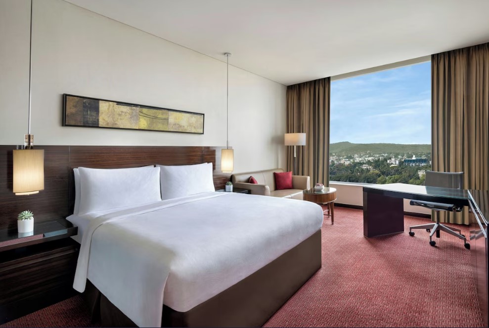 The hotel offers spacious rooms and suites with contemporary décor, luxurious bedding, and large windows overlooking the city or the rolling hills. Club Rooms and Suites provide exclusive lounge access, personalized services, and enhanced amenities, while the Presidential Suite delivers the ultimate in luxury.