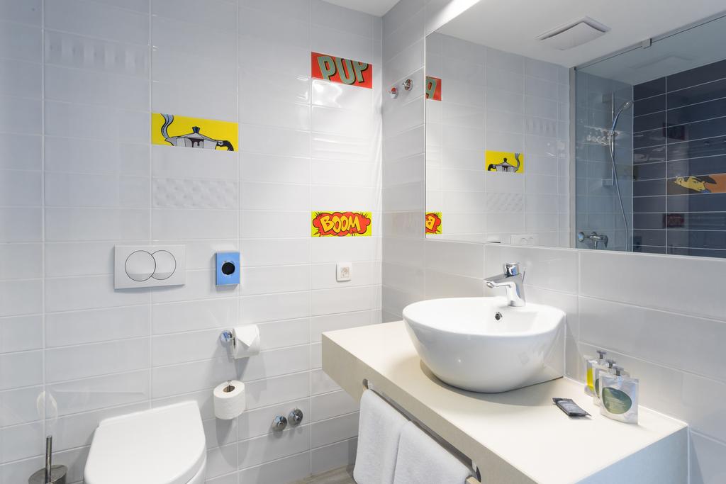 Thanks to the modern design here. There's an industrial chic feel to the lobby bar, and the rooms feature quirky artwork and flat screen TVs.